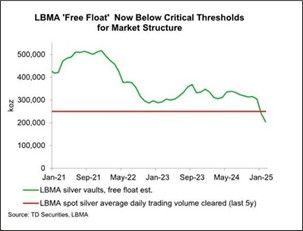 Focusing on silver, the physical market remains abnormally tight with lease rates many times their normal levels. Flows from London to the New York Comex exchange have been steady, with some 134Moz flowing West in the four months to the end of February.