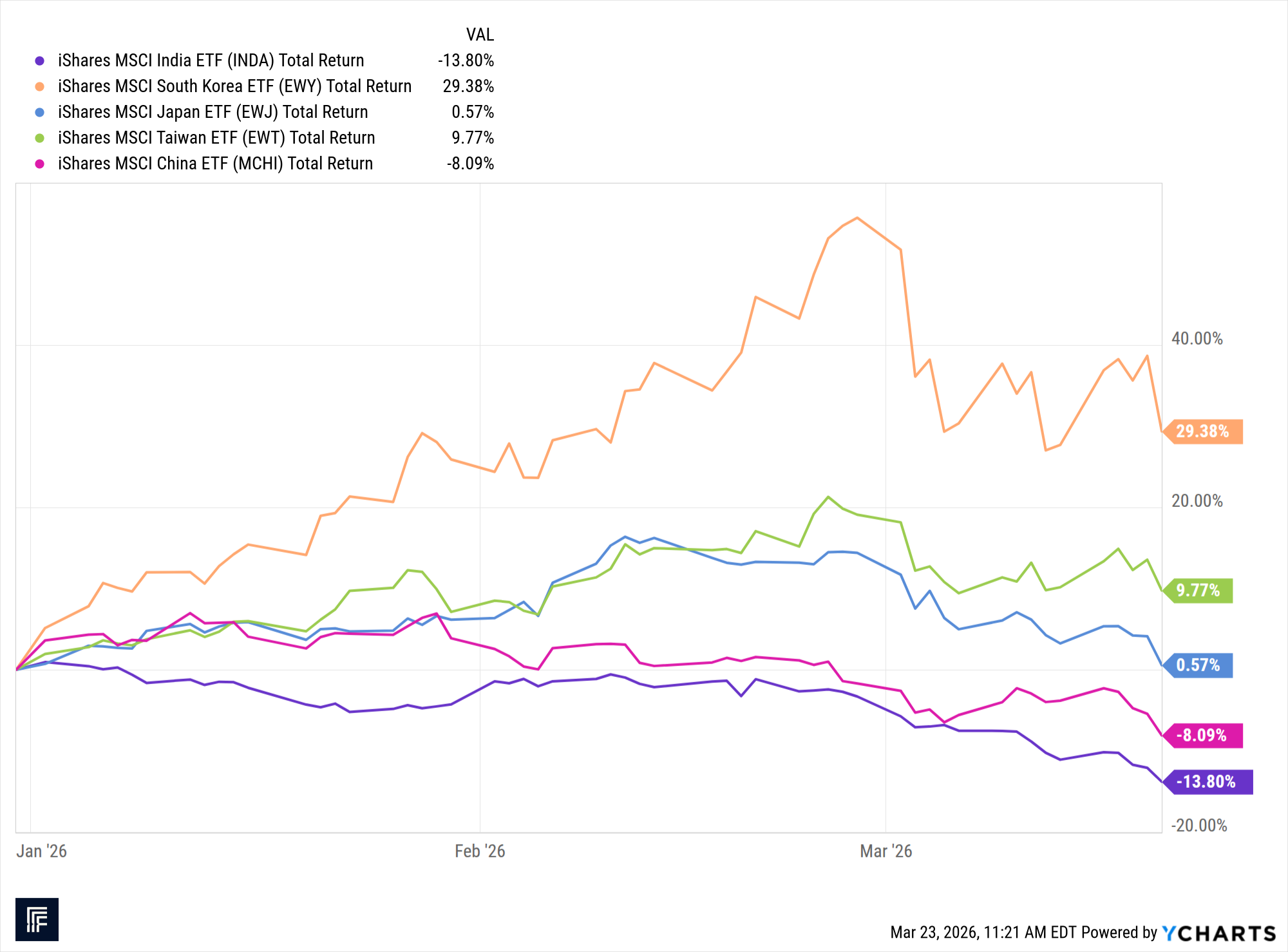 When the Strait of Hormuz reopens, MCHI, INDA, and the Asia complex could see strong gains. Whether you go with multiple individual ETFs or a single ticker (AAXJ) the economic forces appear clearly aligned.