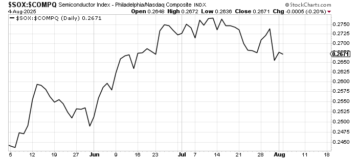 Here’s another change. The SOX underperformed Nasdaq today. Not by a lot but it did not lead.