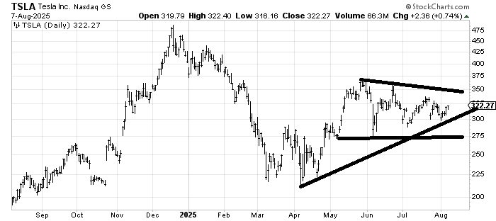 I was asked if I had changed my view on Tesla TSLA, which is that it is trapped in a range, so when it comes down you buy it and if it can get back to the top of the range, we’d probably sell it.