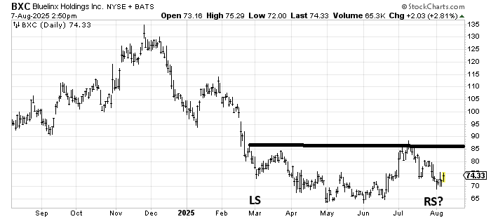 I am definitely intrigued with the chart of Bluelinx BXC, except that it trades by appointment. But this feels like a chart trying to bottom. When we get oversold again, this should be one to watch as long as it stays over 65-70.
