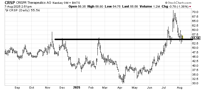 I hesitate to buy a biotech these days because health care in general has been so bad. But as far as risk/reward goes, if Crspr CRSP can stay over 52, then it ought to be okay.