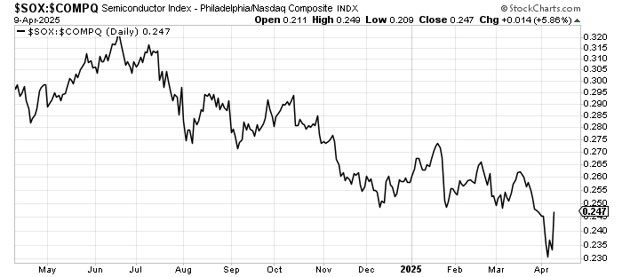 I think the ratio of the SOX to Nasdaq (shown here last night) helped us see the improvement, and you can see the big outperformance today. I will monitor this for signs that the rally is done.