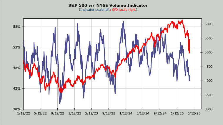 The Volume Indicator (shown below) is already back at .46. My best guess is if the rally can last another several days –even if it is off and on—this will be back over .50 a week from now.