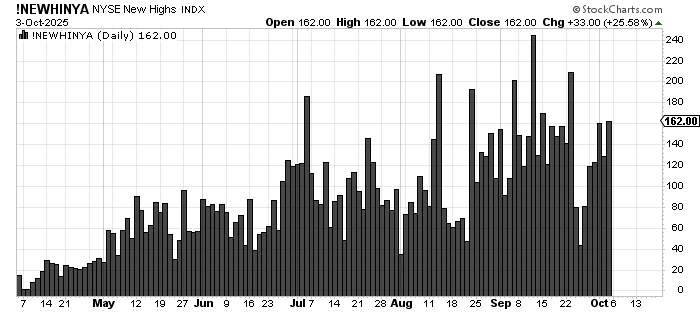 The new highs are still under that peak reading, but new lows have begun to contract.