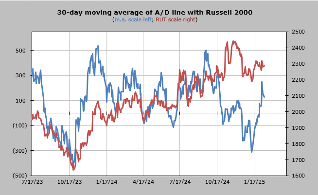 The 30-day moving average of the advance/decline line is discussed above.