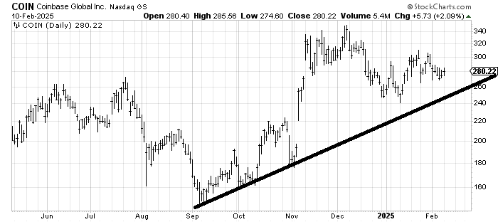 We had a good trade in Coinbase COIN in January but the stock has come off that high around 300. But it is feeling tired of going down so I’d buy for another trade.