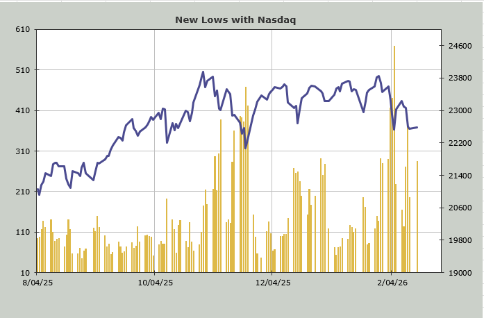 That’s sentiment. Then there are the number of stocks making new lows. Nasdaq had 285 new lows today. On February 6th there were 569.