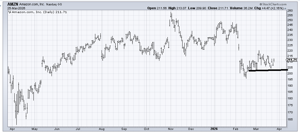 I want to follow up on Amazon (AMZN) , which I was asked about last week. I noted that as long as 205 held the stock would be okay. It has thus far held. I think that reinforces that this is your stop.