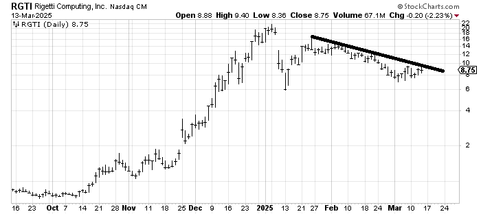 Rigetti Computing RGTI which I looked at with a positive eye earlier this week, continues to hold up well. I’d like it to stay over 7.75, and I’d like it to cross 9.75.