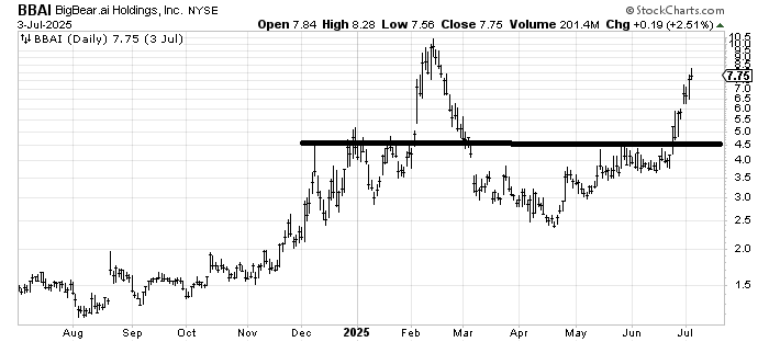 Big Bear.ai BBAI has had quite a run. I would not chase it here. I would take another look at it if it can correct and stay over $6.