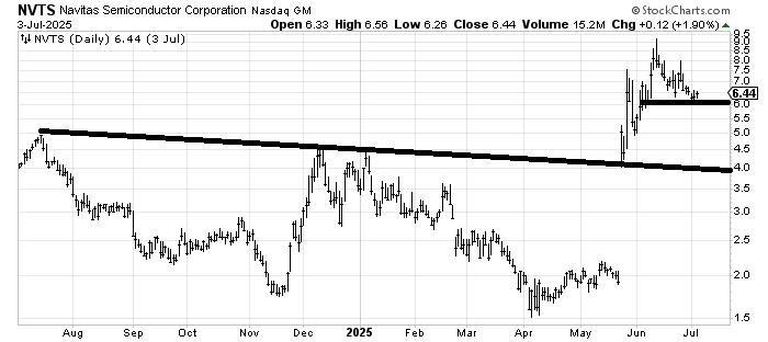 If Navitas Semiconductor NVTS can hold this $6 area it is starting to look oversold enough for a bounce. A prolonged sideways (say between $6-7.50) would probably shape the chart up better.