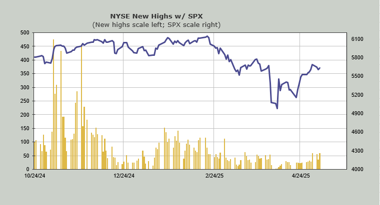But over on the NYSE, the new highs are trying to improve. A reading over 60-ish would be the most new highs since February.