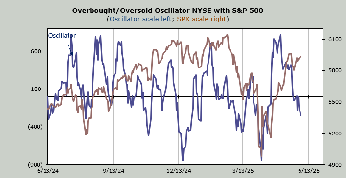 In the meantime, with breadth negative for pretty much the last two weeks, we have to say that some of the 493 are getting oversold short term. As a reminder: Over the next few weeks I anticipate noting that there will be times I say we are short-term oversold but I do not expect the market to run away on the upside because we are intermediate-term overbought.