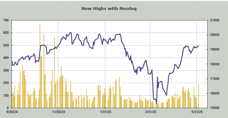 The other change is that while the number of stocks making new highs on the NYSE remains low, the Nasdaq saw a bit of an increase, to 184. This is a far cry from where it ought to be but we have to give credit that it is now a higher number than it was two weeks ago.