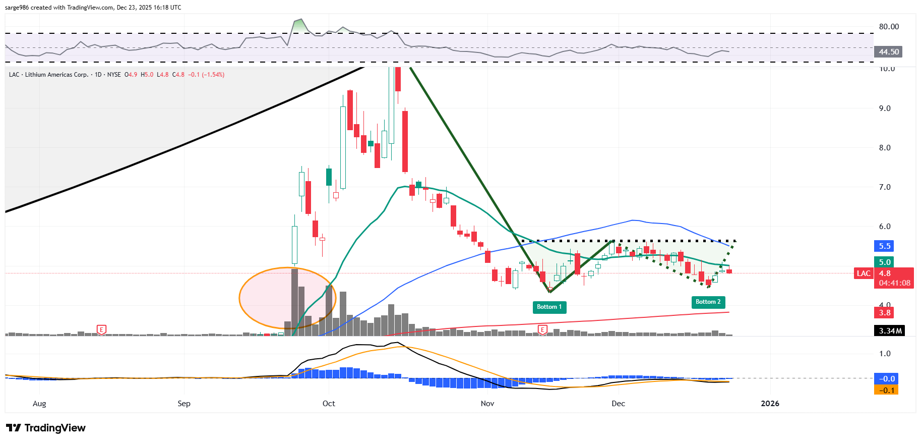 ​Earnings for Lithium Americas (LAC) are due in March. Again, no sales are expected. Still, this is the lithium miner with a deal with the Department of Energy and a majority stake in the mine at Thacker Pass, Nevada near the Oregon border. This is believed to be one of the largest lithium deposits in the world. The stock has been a dog for a little while but hasn't run wild either. No sales, but enthusiasm has been kept in check. That's actually a positive.