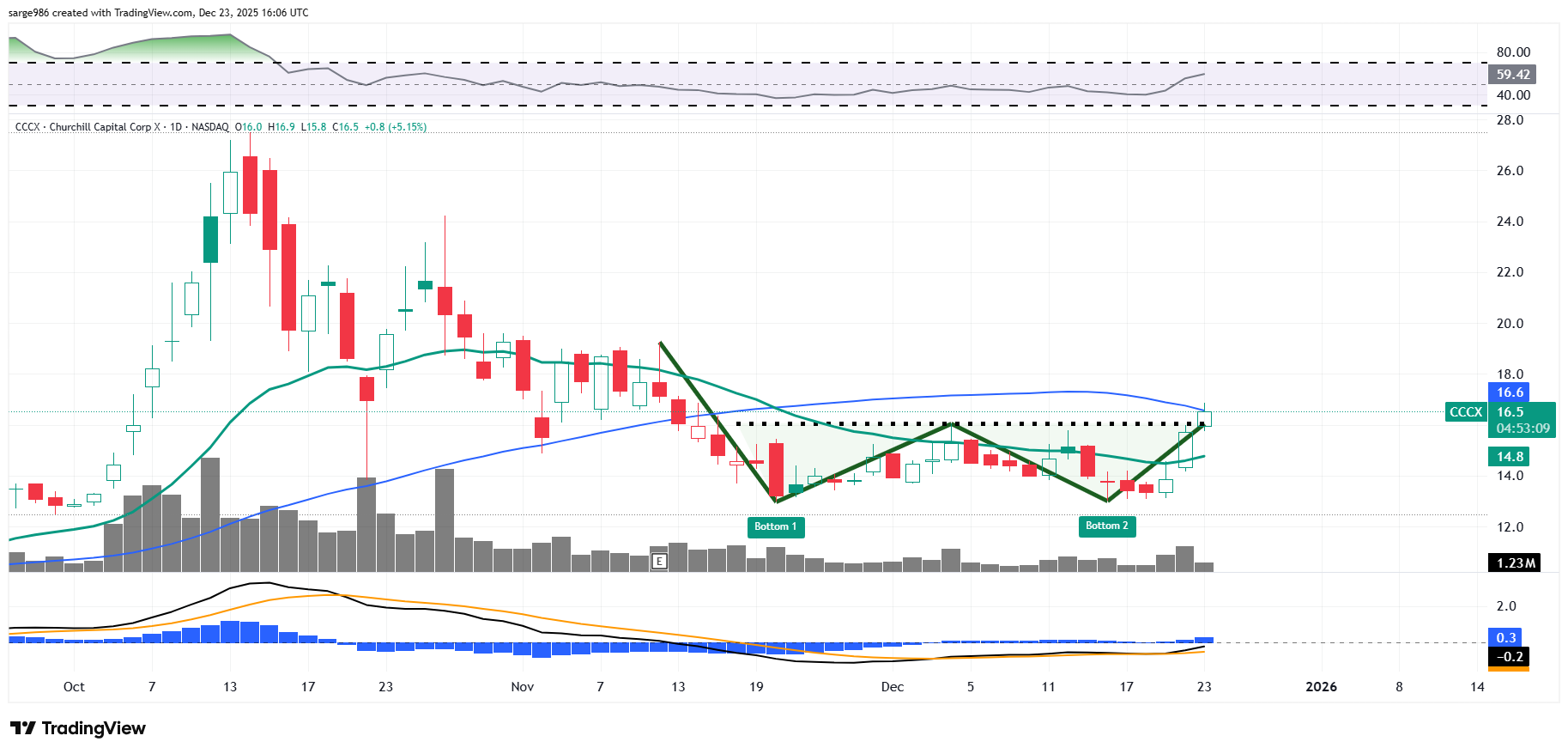 As we know, double bottoms are usually considered to be bullish patterns going forward. No, I don't have levels for my "yet to merge" SPACS. Let's take a look.