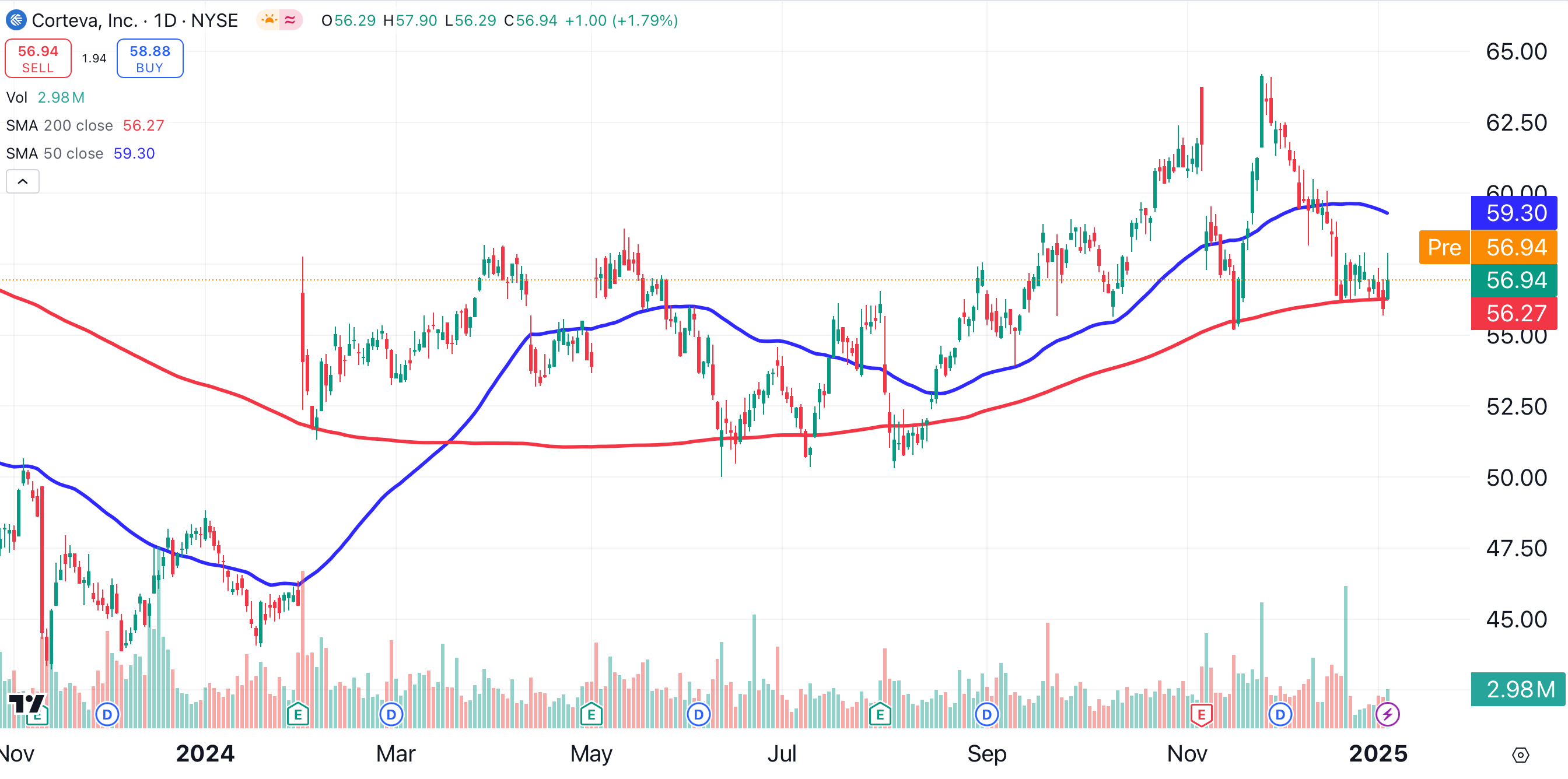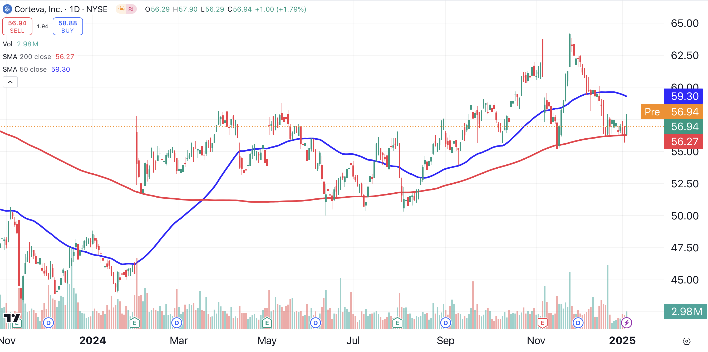 The charts indicate that it’s time to open a small position in Corteva. This is not necessarily for a trade, as I hope to grow this position into a longer-term holding.