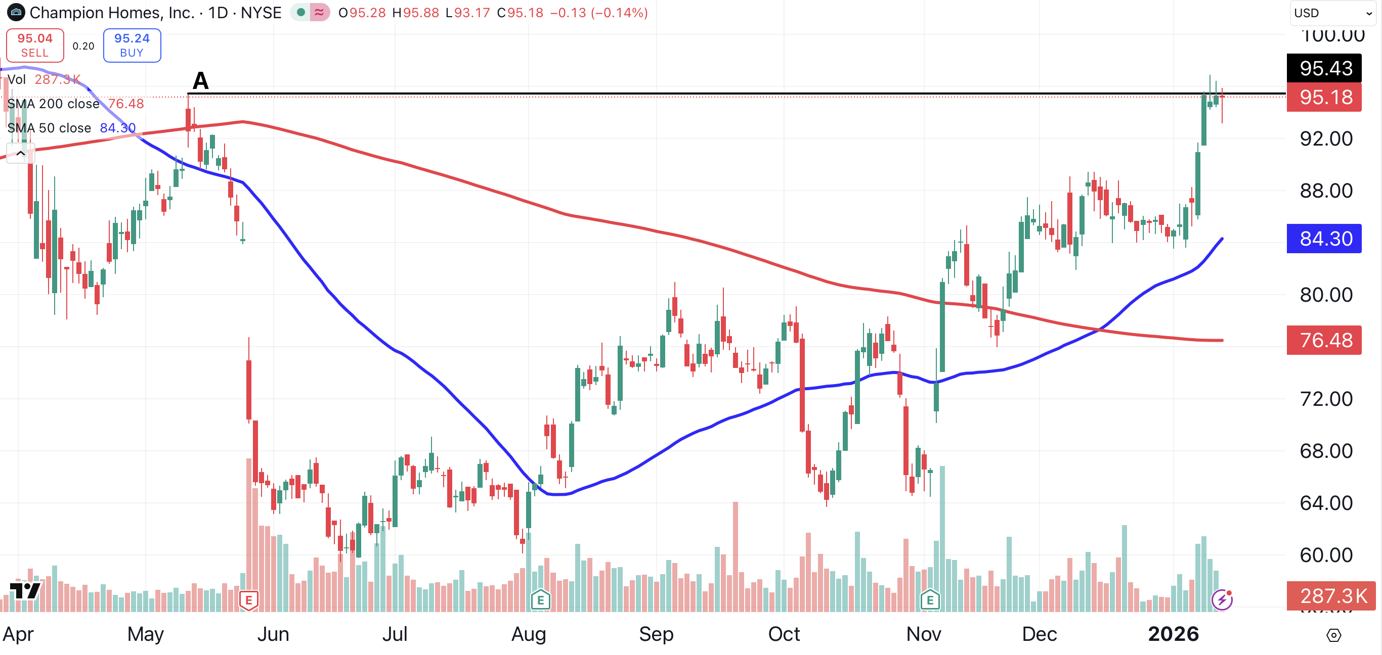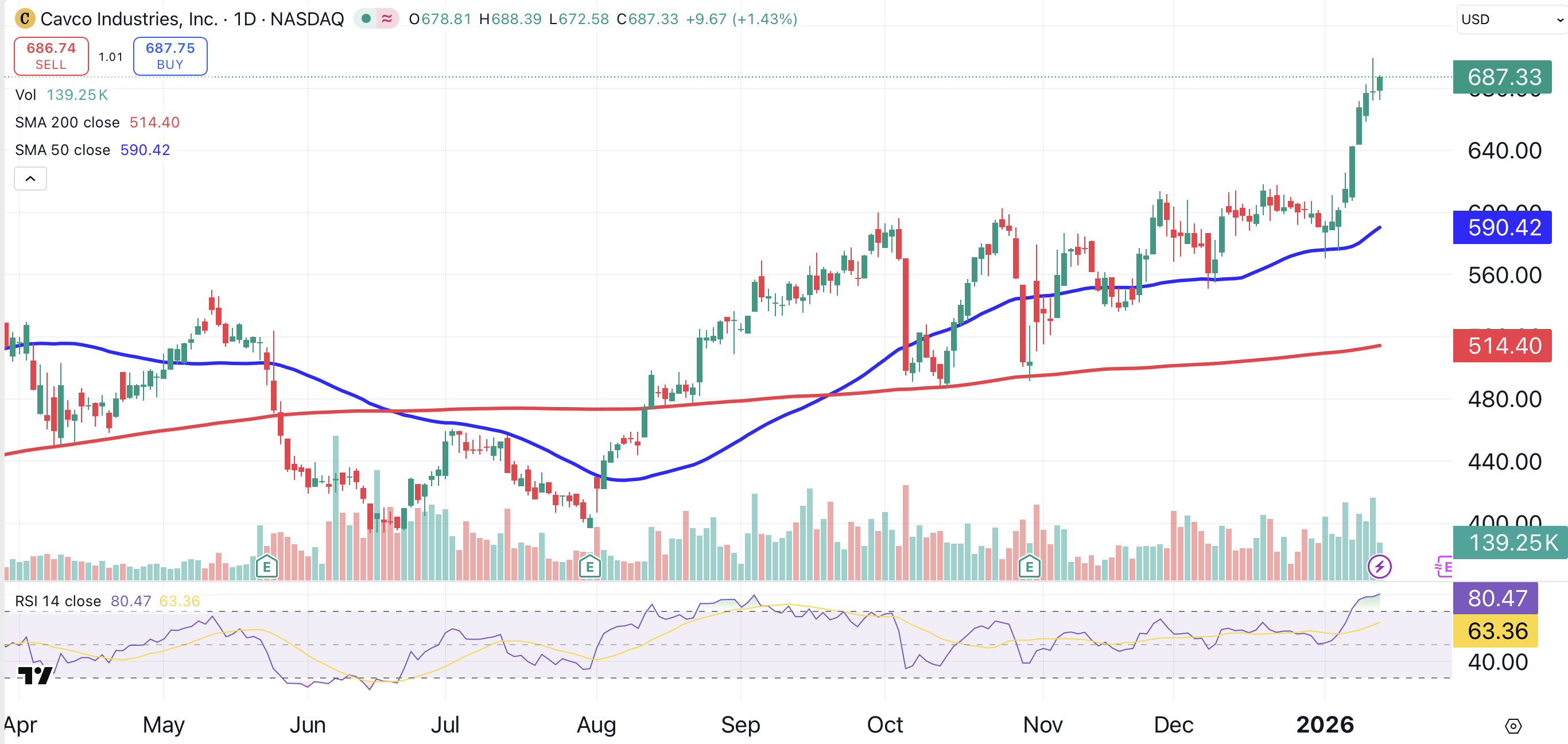On Wednesday, Cavco closed at an all-time high. The stock has closed higher for eight consecutive sessions. Cavco shares are currently overbought, according to its RSI (relative strength index) indicator. GRADE: B+