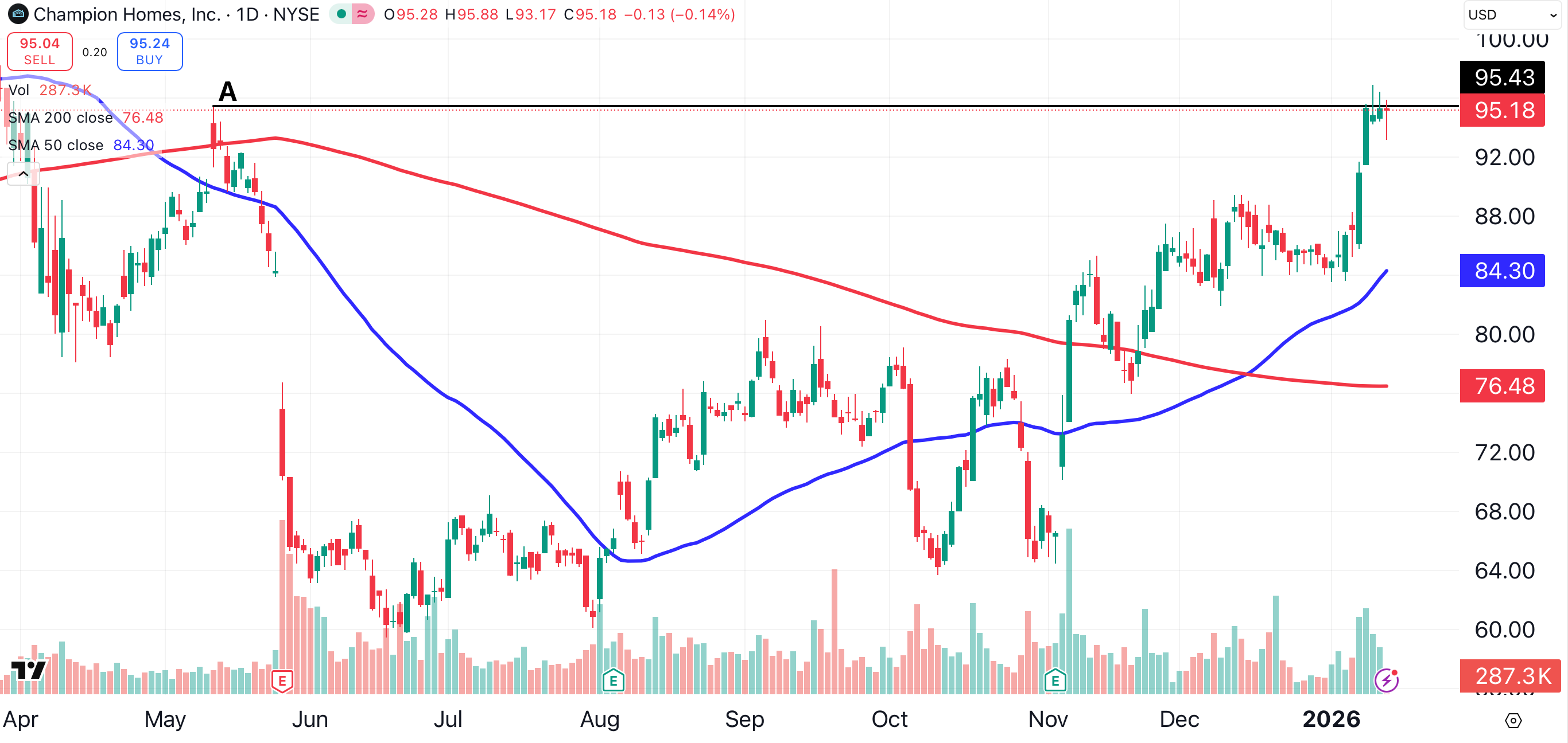 Like Cavco Industries, Champion Homes (SKY) is known for lower-cost manufactured and modular homes. Shares of Troy, Michigan-based Champion have gained 43% over the past six months.