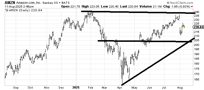 Amazon AMZN has some decent support back in the 195-205 area. For the time being, that’s the area I would look at it again.