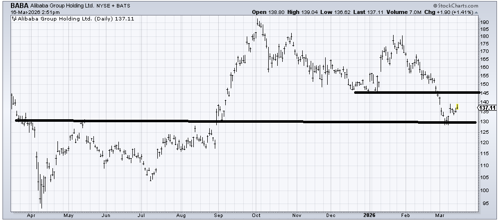 Alibaba (BABA) bounced off support and even made a higher low last week. I think it can rally to resistance around 145, although I would love to see it down at 130 one more time just to prove to me there were buyers there again.
