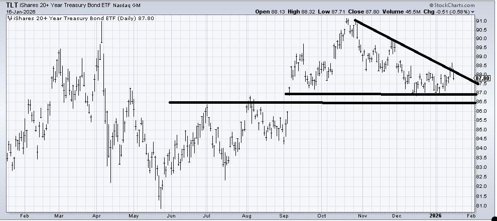 (TLT) did not break down under the 86.50-87 area I have targeted as support for months now.