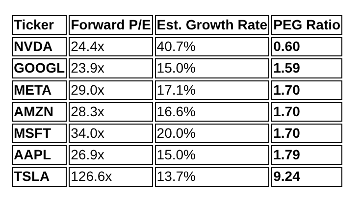 Magnificent Seven PEG Ratios (Year-End 2025)