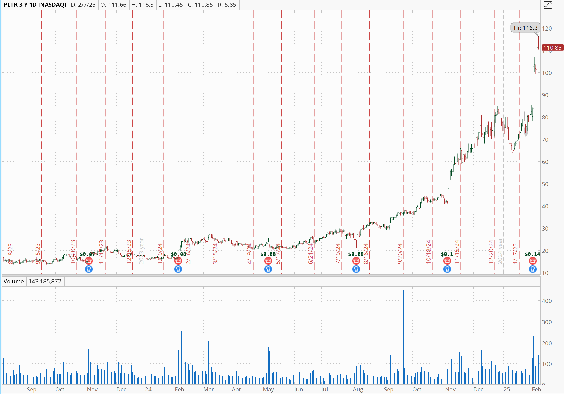 A nice benefit is our ability to cover smaller names. Stephen "Sarge" Guilfoyle loves to write about small caps. And sometimes, those small caps become big caps ...like Palantir PLTR. Sarge has covered this stock since it was $6, around two years ago. Well, little Palantir has become a monster, touching $116 today.