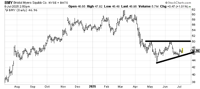 Will Bristol Myers BMY ever rally again? I keep thinking it will, but I’m going to use a stop under 44-ish now.