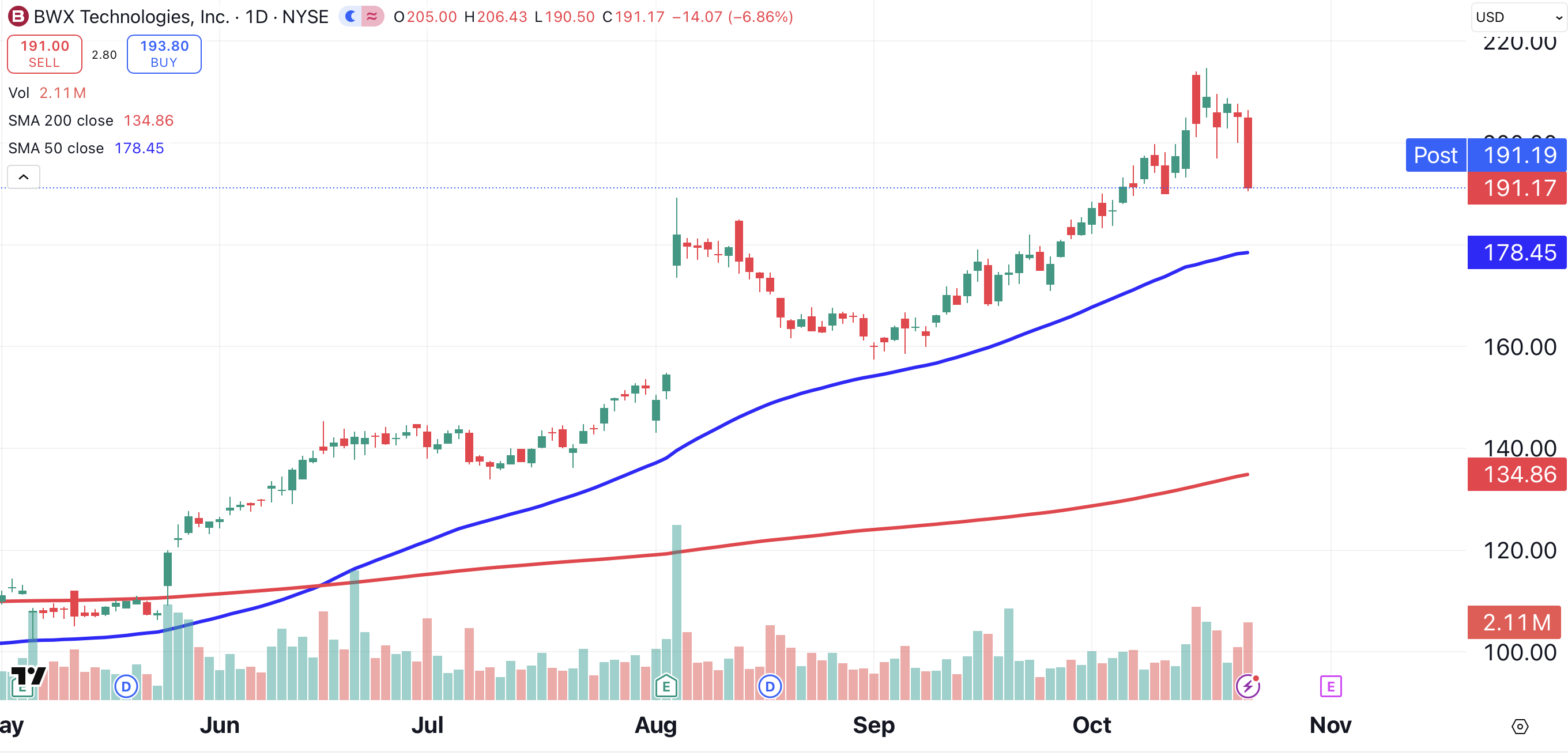 Another name that has been good to us in the nuclear sector is BWX Technologies (BWXT). In July, when we first recommended BWXT, we were able to enter in the $140 area. Now, we’ll close half of the position in the $190 area.