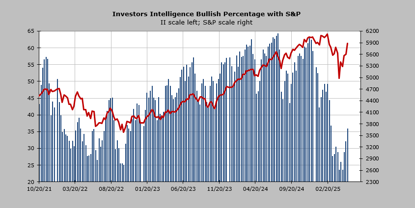 The Investors Intelligence survey showed the first switch: we now have more bulls than bears. It’s not extreme at all, but the bulls are 36% while the bears are 30%. I expect to see more bulls and fewer bears next week.
