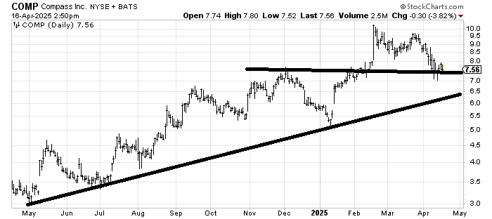 Compass COMP is at some light support but I think it is vulnerable to a move to tag that line around 6.50.