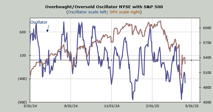 This doesn’t mean we have to rally every single day (unlikely in this market), but it does mean that the Oscillator itself should rise because when we replace, say, Monday’s reading of net negative 2335, it will have to be with a larger negative reading for the Oscillator to go down some more.