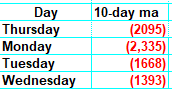 For that, I look back ten days ago to see what sort of numbers we are dropping. When we drop big red numbers, I take that as an oversold situation. Now, in this case, it is hard to say we are oversold. However, for the next four trading days, we are dropping some pretty hefty red numbers. That is why I think we rally one more time.