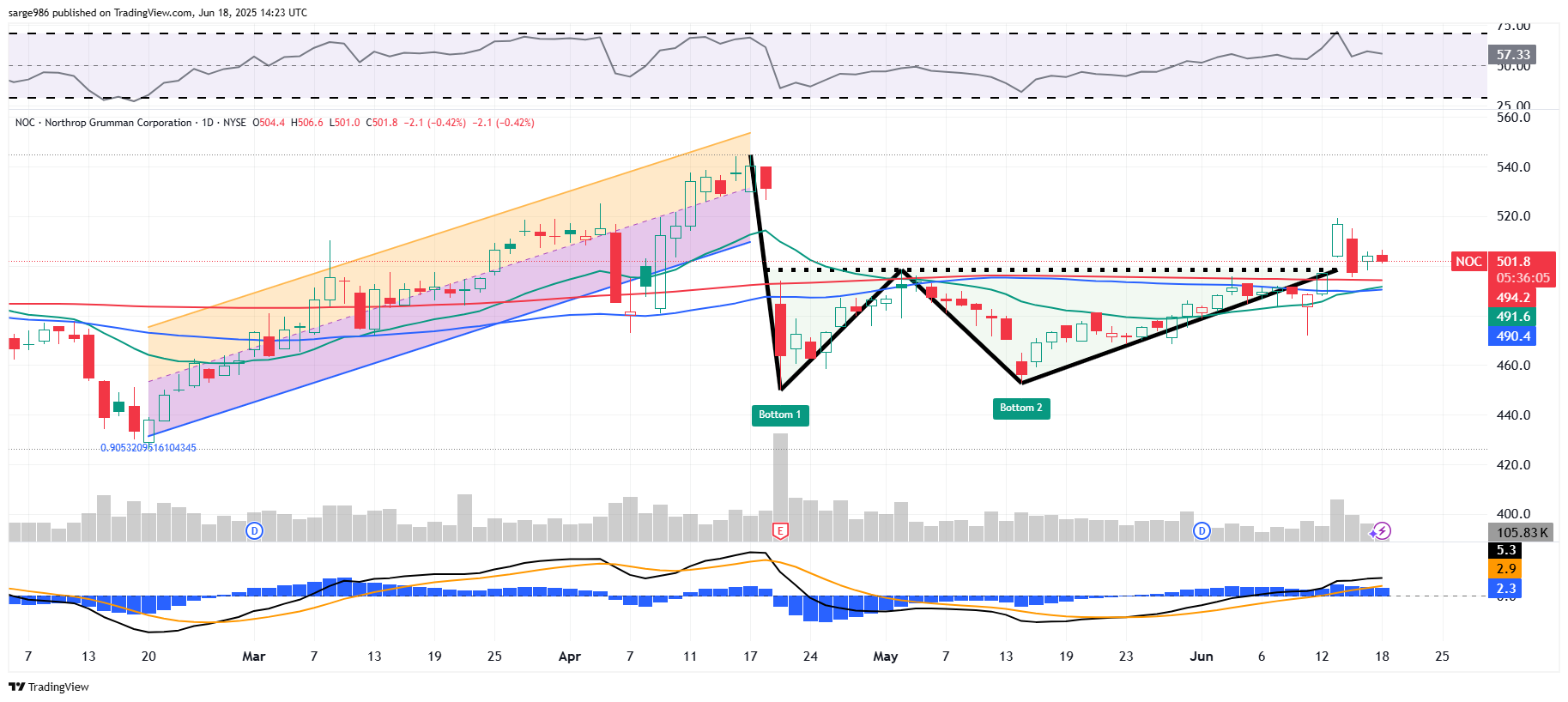 As military contractors suddenly heat up, let's take aim at NOC, its chart and my strategy.