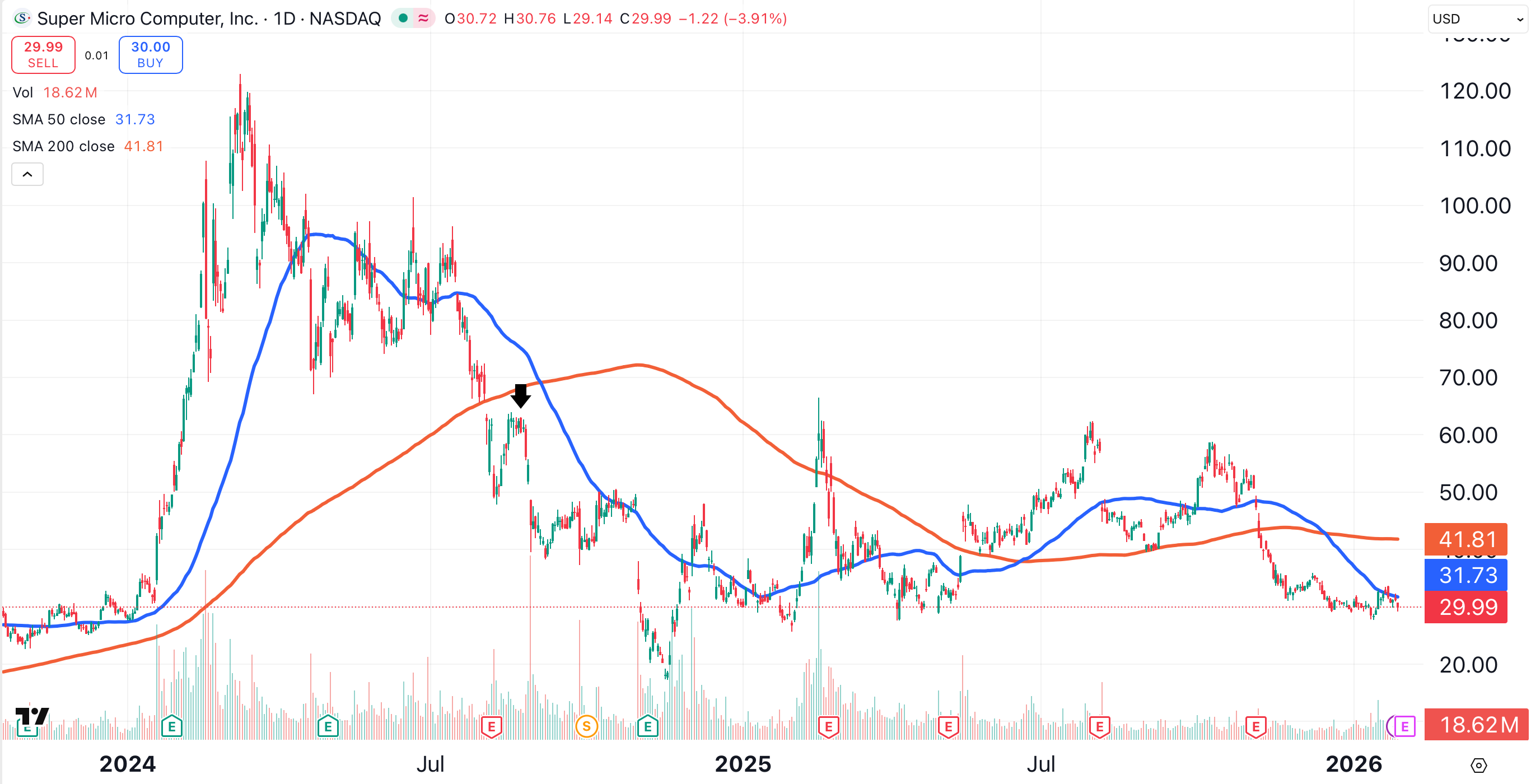 For example, Hindenburg alleged accounting irregularities by Super Micro Computer (SMCI) in August 2024 (arrow). In the midst of a bull market, shares of the San Jose-based provider of advanced servers have been nearly halved since that report was issued (arrow). An independent investigation found no evidence of wrongdoing.