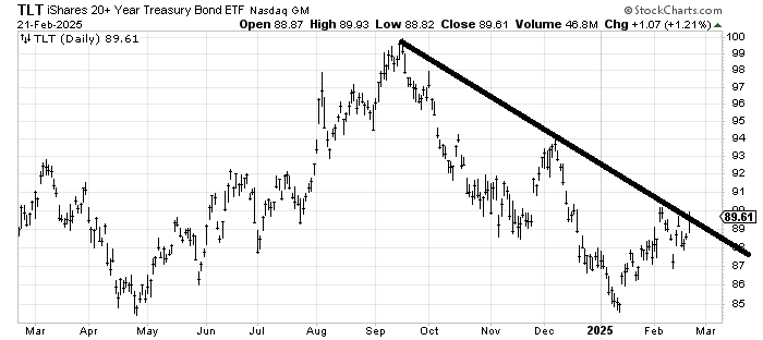 That wild move in TLT from 88.50 to 87 shook me out in TLT. But it now, in hindsight, looks like that’s what it was meant to do. I do think TLT is more apt to cross that downtrend line in the coming weeks, but it has got to clear 90 like it means it and do it soon, or else I am wrong.