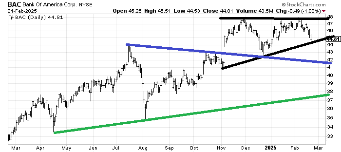 Bank Of America BAC is one of the reasons I have not loved the banks lately: it refused to make a new high. You can also see it broke that DeepSeek low. If 44 doesn’t hold, then I expect 42-43 will give us a bounce (blue line).
